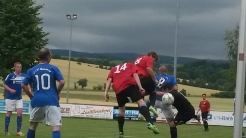auf, die die Bälle auf die Flügel verteilten. Die Barchfelder zogen sich mehr und mehr in die eigene Hälfte zurück, um die Räume eng zu machen. Die SG erhöhte allmählich das Tempo , störte immer früher den FC im Spielaufbau und gewann immer öfter den Ball im Mittelfeld. In der 7. Minute eroberte Daniel Heiderich den Ball , spielte ihn gleich auf Martin Franke weiter, dessen Schuss knapp über das Tor strich. Wenig später chippte Arnold geschickt den Ball auf Schellenberg, der das Leder knapp über den Winkel schoss. Die Chancen häuften sich und kamen im Minutentakt. Rene Heger zog aus 20 m ab und knallte den Ball an die Latte. Das Führungstor lag in der Luft und Barchfeld verteidigte mit Mann und Maus. Lehmann warf sich im letzen Moment in den Schuß von Kolk und blockte ihn erfolgreich. Allerdings in der 18. Minute war der Bann gebrochen. Schellenberg gewann einen Zweikapf im Mittelfeld, spielte in den Lauf von Harnack, der direkt ins lange Eck zum 1:0 traf. Ein Angriff über die linke Seite brachte das 2:0. Schellenberg überlief seinen Gegenspieler, flankte mit links in den Strafraum und Martin Franke lief genau rein und köpfte unhaltbar gegen den Lauf von Munk. (21. Min.). Eine Minute später machte der agile Patrick Schellenberg den Assisthattrick perfekt, indem er den wieder genesenen Kolk freispielte, der aus kurzer Distanz die Kugel über Keeper Munk zum 3:0 lupfte. Barchfeld brach nun etwas ein und konnte dem Tempo der Glücksbrunner nicht mehr folgen. Das 4:0 war eine Kopie des 2. Treffers, als Martin Franke erneut in eine Flanke, diesmal von Harnack geschlagen, einlief und ins kurze Eck köpfte (23. Min.). Kurz vor der Halbzeit legte Arnold den Ball geschickt im Strafraum auf Schellenberg ab, der diesmal selbst zum 5:0 Halbzeitstand erhöhte (43. Min.).