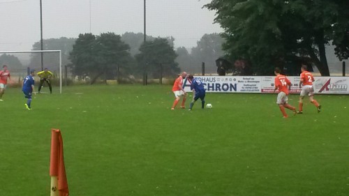 Auf regennasser Piste mit tiefem Boden hielt Wacker sofort das Tempo hoch, ging bissig in die Zweikämpfe und hatte eindeutig mehr Ballbesitz. Gumpelstadt war teilweise überfordert mit dem Tempo und geriet in seiner Grundordnung durcheinander. Die erste Chance des Spiels hatte Charlie Seidel in der 2. Minute nach einer Flanke. Keeper Walther parierte jedoch den Ball sehenswert aus dem rechten Eck. Die darauffolgende Ecke brachte wieder Gefahr als Weisheit erneut mit einem Kopfball Walther prüfte. Die Heimelf zog sich mehr zurück, machte die Räume eng und fand besser ins Spiel als ein erster Konter über Martin Keybe , Thomas Wand und Kapitän Ralf Wünsch Entlastung brachte und der Ball knapp am Kasten von Wacker vorbeiging (8. Min.). Kurz darauf war es Heinel, der Wand geschickt frei spielte, sein Schuss das Tor knapp verfehlte. Bei strömenden Regen parierte der Gumpodia Keeper Walther, der ein gutes Spiel machte, den gefährlichen Aufsetzer von Wendler (14.) ,doch gegen den Schuss von Damaske war er machtlos, der zuvor allein auf ihn zulief und ihn unhaltbar einschob (17. Min.).